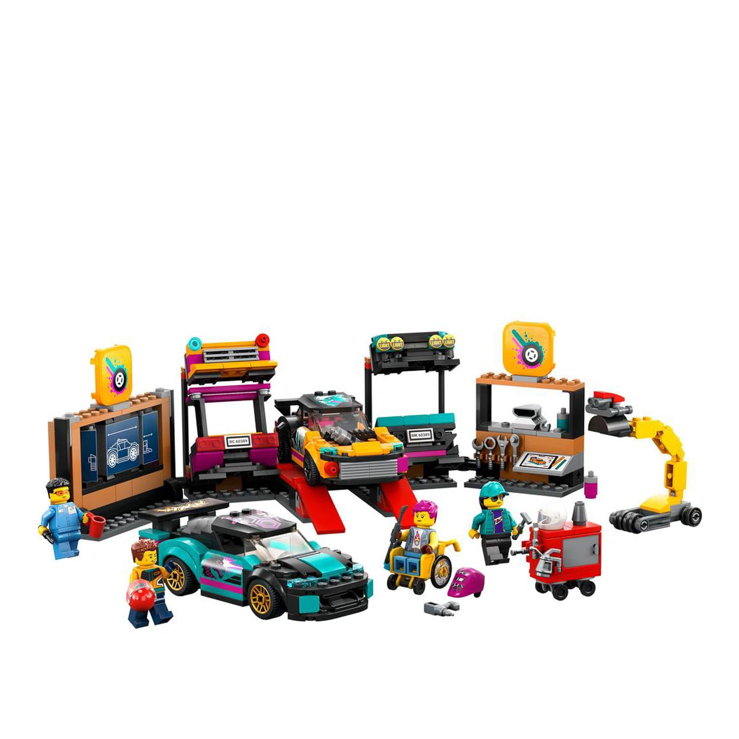 Personalizzare un'auto diventa letteralmente un gioco da ragazzi, con il set di gioco Garage auto personalizzato LEGO® City, che include un'officina con moltissime funzioni e 2 auto giocattolo personalizzabili. I bambini possono scegliere fra una vasta gamma di motori e sezioni modulari per la parte anteriore e posteriore, con diversi tipi di fanali, paraurti e spoiler, per creare i propri design esclusivi. Include 2 minifigure di meccanici e 2 di piloti, con tanti accessori divertenti. Questo set di gioco per bambini dai 6 anni in su include una guida alla costruzione illustrata, facile da seguire, e l'App LEGO Builder: una guida interattiva alla costruzione, con intuitivi strumenti di zoom e rotazione, che permettono ai bambini di visualizzare i modelli da tutte le angolazioni mentre lo costruiscono. Il kit è composto da 507 pezzi.