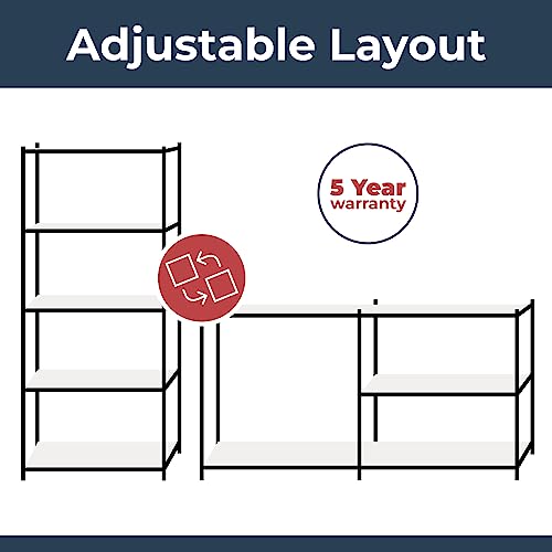 ROBUSTO & SOLIDO: ogni ripiano viene testato ed è sufficientemente resistente da reggere un peso massimo di 175Kg (per un totale di 875Kg a scaffale!) Inoltre, ogni unità è dotata di piedini in gomma antiscivolo che danno maggiore stabilità.