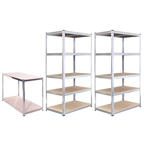 Garage Shelving Units & Workbench: 180 x 90 x 60-2 Bay - Galv. - 5 Tier