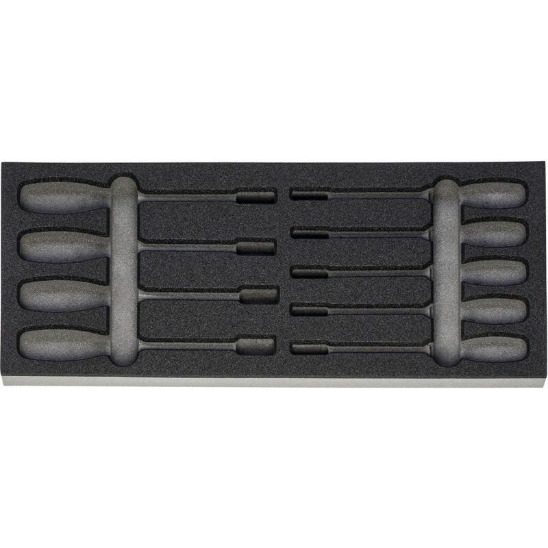 DescrizioneEsecuzione:Assortimenti standard di utensili in alloggiamenti sagomati in espanso rigido bicolore in PE. La struttura non porosa dell'espanso è impermeabile e resistente agli oli. Strato superiore color antracite, quello inferiore di contrasto color grigio mette in evidenza gli utensili mancanti.Dati tecnici Forma in espanso rigido LD45, spessore 30 mm Esecuzione vuoto per assortimenti di utensili Tipo di prodotto Inserto in espanso rigido Codice articolo 952001 952661 EAN / GTIN 4062406156565