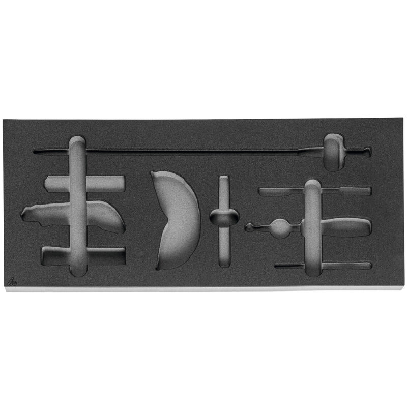 DescrizioneEsecuzione:Assortimenti standard di utensili in alloggiamenti sagomati in espanso rigido bicolore in PE. La struttura non porosa dell'espanso è impermeabile e resistente agli oli. Strato superiore color antracite, quello inferiore di contrasto color grigio mette in evidenza gli utensili mancanti.Dati tecnici Forma in espanso rigido LD45, spessore 30 mm Riempimento di un cassetto in G 10×24 Larghezza 250 mm Profondità 600 mm Larghezza in G 10 Profondità in G 24 Numero di utensili 9 Esecuzione vuoto per assortimenti di utensili Tipo di prodotto Inserto in espanso rigido Codice articolo 952001 954986 EAN / GTIN 4062406093723
