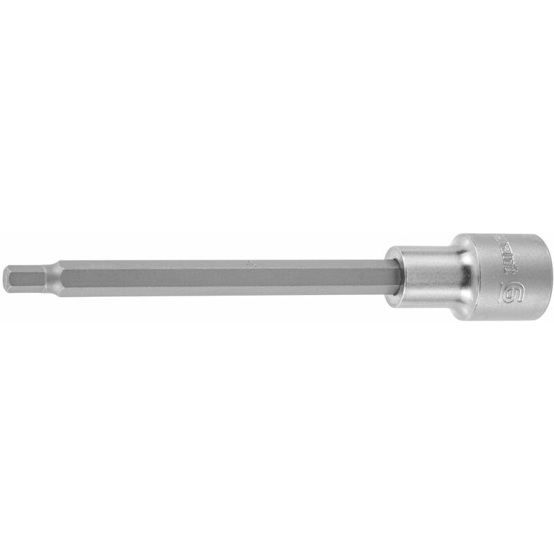 Costituite da due componenti. Corpo temprato in modo ottimale per l'assorbimento e la trasmissione della forza motrice. Quadro interno con tolleranze ridotte per una presa sicura e stabile sull'utensile di manovra. Quadro interno secondo DIN 3120. Norma: DIN 7422 Materiale: Acciaio al cromo-vanadio, cromato. Mandrino in materiale tenace con durezza elevata, esecuzione lucida. Dati tecnici Quadro di manovra femmina Zoll 1/2 Tipo di prodotto Bussola Lunghezza, mm 140 Esagono, mm 6 ⌀ Lato azionamento, mm 22,5