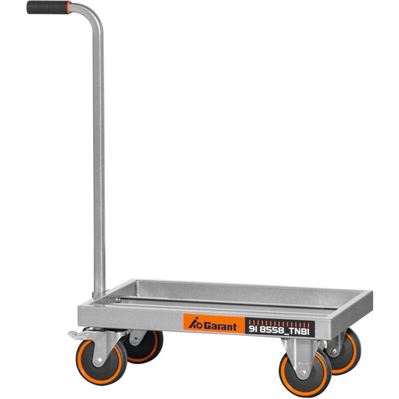 Struttura in acciaio saldato. Impugnatura con inserto in Haptoprene® e polipropilene resistente agli urti. 2 ruote fisse e 2 piroettanti (con dispositivo di bloccaggio), con superficie di rotolamento in poliuretano antitraccia, mozzi su cuscinetti a rulli. Per: Carrello portacontenitori a norma europea n. art. 963378, 963379, 963380, ognuno di Dim. NB10 - NB80. Verniciatura: Argento termoverniciato. Nota: Per ottimizzare il trasporto l'articolo viene fornito smontato. Il montaggio è escluso. Dati tecnici Tipo di prodotto Carrello ⌀ Ruota, mm 125 Larghezza, mm 790 Altezza, mm 910 Altezza basamento, mm 180 Peso, kg 9,6 Profondità, mm 400 Materiale rotelle Superficie di scorrimento in poliuretano che non lascia tracce Portata massima, kg 250