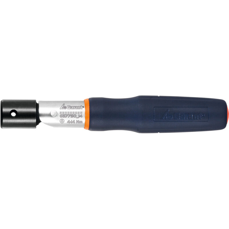 Chiave dinamometrica ad asta unica senza scala. Regolazione della chiave con strumento di controllo per chiavi dinamometriche. Il meccanismo di rilascio automatico limita il superamento involontario del valore impostato di serraggio. Per serraggio antiorario grazie alle apposite teste intercambiabili per chiavi dinamometriche. Funzione: Al raggiungimento del valore impostato per il momento torcente, e per il valore di coppia, la chiave si sblocca in modo percettibile ed è poi subito pronta all'uso. Il segnale di rilascio lungo indica chiaramente all'utilizzatore che il valore impostato è stato raggiunto. Uso: Per il serraggio controllato delle viti con valore di coppia preimpostato per lavori in serie. Norma: Geprüft nach DIN EN ISO 6789. Precisione: ±4 % dal valore impostato. Dati d'impiego: Legenda per disegno e formula: Dati tecnici Funzione Knick sì Tipo di prodotto Chiave dinamometrica Metrologia meccanico Tipo di collegamento per teste a innesto (attacco rettangolare) Principio