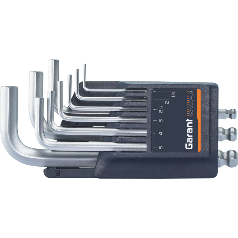 lunghezza fianchi ottimale. Con testa sferoidale per lavorare con angolazioni fino a 30°. Acciaio al cromo-vanadio, interamente temprato (tenace), superficie cromata. Il supporto in plastica permette di sfilare facilmente ogni singola chiave senza dover spostare le altre. Fornitura: Cad. 1 chiave maschio piegata n. art. 626082: Dim. 1,5;