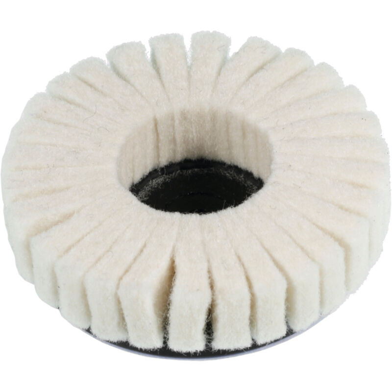 Lamelle di feltro disposte in verticale (altezza 10 mm). Uso: Lavori di lucidatura con elevata flessibilità. L'uso successivo dell'esecuzione medio-dura e morbida permette di ottenere superfici a specchio di notevole qualità. Nota: I dischi per lucidatura in feltro vanno usati in combinazione con paste abrasive e per lucidatura come n. art. 552250 / 555740. Velocità periferica consigliata 5 - 10 m/s. Dati tecnici Attributo del nome del prodotto ⌀ 50,8 mm Tipo di prodotto Disco abrasivo Grado durezza medio Supporto di lucidatura Feltro ⌀ Disco, mm 50,8