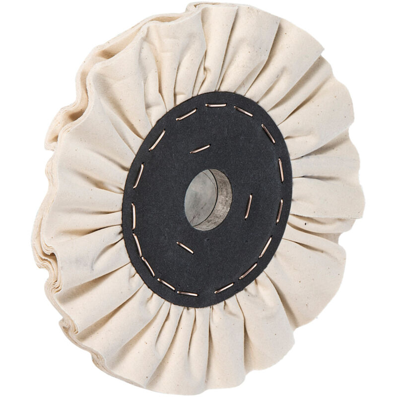 Tessuto molto fine, minor consumo di pasta per lucidatura, buona durata − nessuna sfrangiatura. Disco in tessuto intorno al nucleo in cartone (alloggiamento). Uso: I dischi con tessuto pieghettato possono essere serrati nel numero e nella larghezza desiderati. Adatti per l'impiego con paste per lucidatura. Dalla lucidatura preliminare alla lucidatura a specchio dei metalli (velocità periferica di circa 25 − 30 m/s). Tessuto finissimo per lucidatura impiegato per lucidare tutti i metalli e le materie plastiche. Dati tecnici Larghezza disco mm 18 Tipo di prodotto Disco in tessuto ⌀ Foro, mm 40 ⌀ Anello riduttore, Zoll 1 ⌀ Anello riduttore, Zoll_ 1/2 ⌀ Anello riduttore, mm 22,2 ⌀ Anello riduttore, mm_ 20 ⌀ Anello riduttore, mm_ 16 ⌀ Anello riduttore, mm_ 12 ⌀ Anello, mm 250
