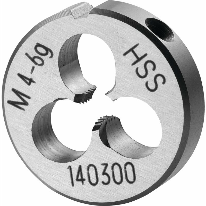 Forma chiusa preincisa. ≥ M3 con imbocco corretto su entrambi i lati per agevolare l'esecuzione del filetto ed evacuare correttamente i trucioli nella direzione di taglio. Imbocco a 1 spira e 3/4. Dati tecnici Alluminio (a truciolo corto) m/min limitatamente adatto a secco limitatamente adatto Olio idoneo Acciaio < 750 N/mm² m/min idoneo Acciaio < 500 N/mm² m/min idoneo Tipo di filettatura M Materiale da taglio HSS Norma EN 22568 Angolo di filetto Grad 60 Direzione di taglio destra Tipo di prodotto Filiere Misura del filetto M5 Classe di tolleranza DIN 13 6g Passo, mm 0,8 Altezza, mm 7 ⌀ Esterno, mm 20