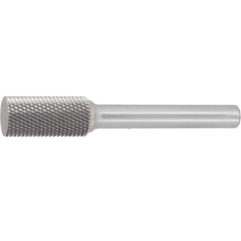 ⌀ codolo 6 mm. Le frese rotative GARANT sono realizzate con metalli duri di alta qualità particolarmente tenaci e con taglienti molto stabili, esclusivamente con moderne macchine CNC. Il gambo è di acciaio se il diametro della testa è maggiore di quello del gambo. In caso contrario anche il gambo in metallo duro. Forma cilindrica (ZYA), senza dentatura frontale. Uso: Sia per l'utilizzo manuale sia per l'utilizzo industriale robotizzato con quasi tutti i materiali. Per lavori di sbavatura, smussatura bordi, intonacatura, nonché per lavorazioni sui punti di saldatura e sulle superfici. Dati tecnici GG(G) m/s idoneo Acciaio < 67 HRC m/s idoneo Acciaio < 1400 N/mm² m/s idoneo Acciaio < 900 N/mm² m/s idoneo Acciaio < 60 HRC m/s idoneo INOX m/s idoneo Ti m/s idoneo Acciaio < 55 HRC m/s idoneo Materiale da taglio HM Tipo di prodotto Fresa rotativa ⌀ Testa, mm 10 Lunghezza della testina, mm 20 Lunghezza complessiva, mm 60 ⌀ Gambo, mm 6 della forma Cilindrica senza dentatura frontale Sigla