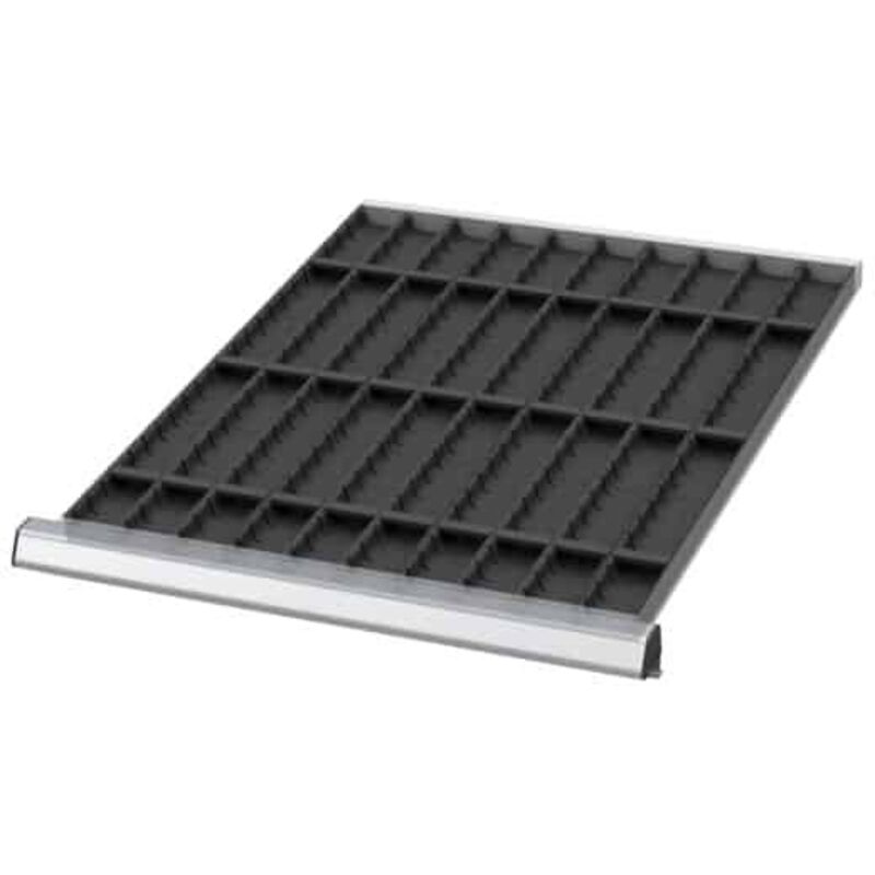 Conche e separatori a incastro in plastica.Le facce interne delle conche sono fessurate per consentire la suddivisione con gli appositi separatori. I divisori riempiono completamente un cassetto 20×24G. Per: Cassetti 20×24G. Contenuto: Conca 1K, altezza 25 mm, n. art. 951415: 9× Dim. 6×8/3;