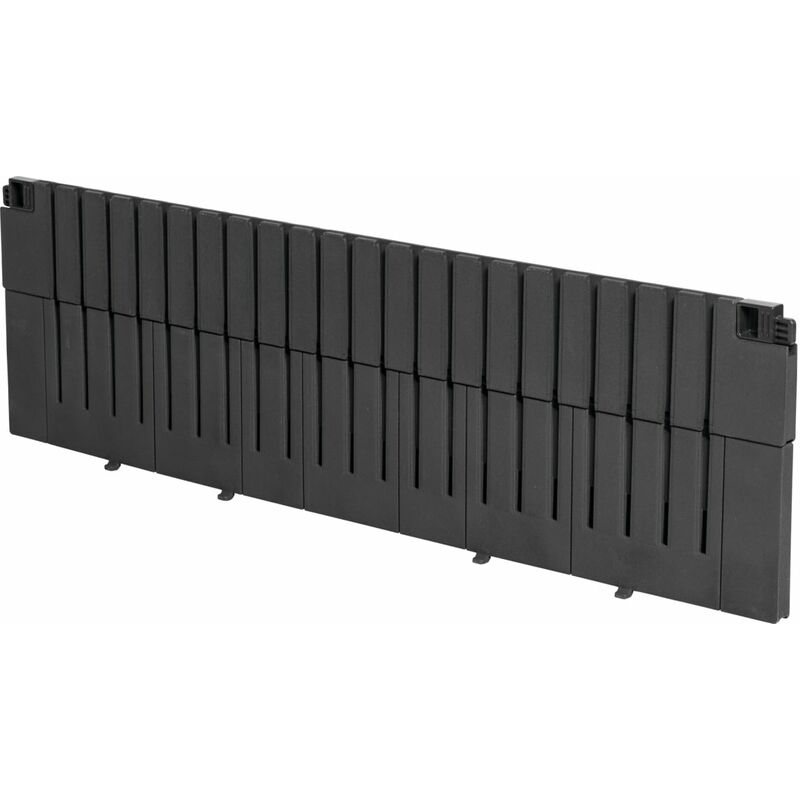 Divisori fessurati singoli per la suddivisione dei cassetti. Montaggio senza utensili: i divisori fessurati vengono fissati con clip nelle fessure del cassetto. Struttura robusta in plastica, nessun pericolo di lesioni sui bordi in caso di estrazione. Inserto intermedio in lamiera di acciaio per una maggiore stabilità. Per: Profondità utile cassetti 24G. Dati tecnici Tipo di prodotto Pannello fessurato Altezza, mm 175 Spessore, mm 12