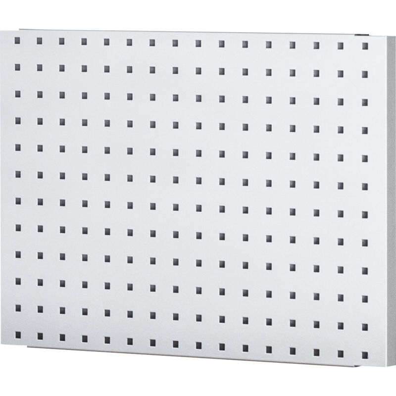 Coppia di piantane di supporto in tubo di acciaio 25×25 mm con pannello forato in lamiera di acciaio (□ 9×9 mm con passo da 37 mm), termoverniciato in argento. Pannello forato su entrambi i lati con apposito passo. Per: N. art. 914520, 914524, 914540, 914550. Fornitura: Pannello forato in lamiera di acciaio inclusa coppia di piantane di supporto. Dati tecnici Passo per pannello forato Hoffmann mm 9×9 Tipo di prodotto Pannello forato Serie ToolCar Altezza, mm 444 Campo d'impiego Carrelli portautensili per officina Pannello forato altezza, mm 444 Pannello forato larghezza, mm 635