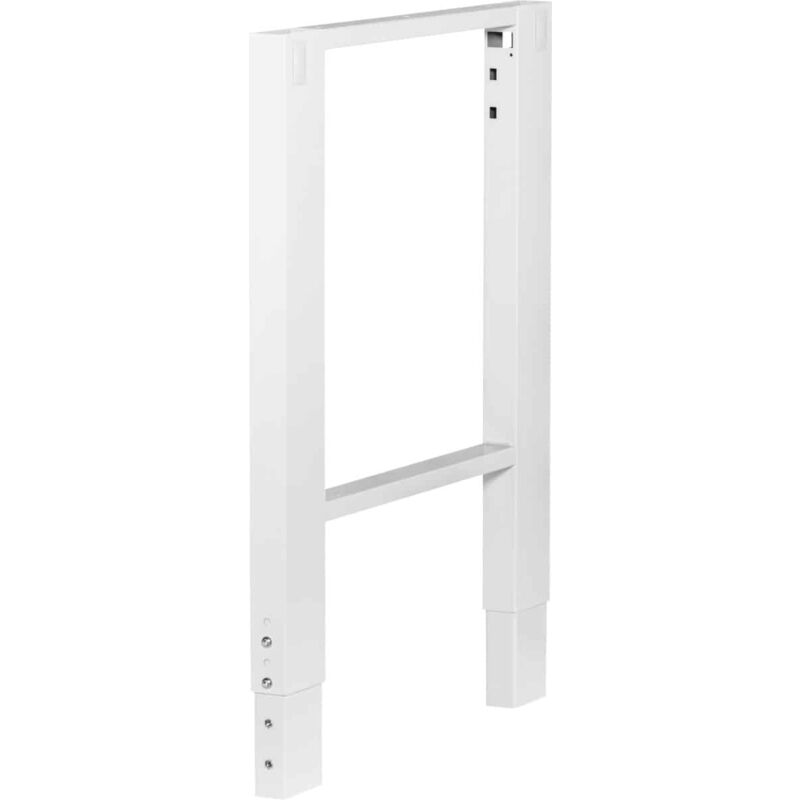 NOTA: selezione del colore possibile Regolazione dell'altezza 150 mm. In tubo di acciaio, larghezza 50 mm, con traversa e attacco per la regolazione dell'altezza con passo da 25 mm. Piedini con tappi terminali in plastica per la protezione del pavimento. Con passacavi per una posa facile e corretta di cavi. Fornitura: Struttura portante con regolazione manuale dell'altezza n. art. 927080 Dim. 150. Verniciatura: Termoverniciati in grigio chiaro RAL 7035. Nota: Le strutture portanti senza parete posteriore o sprovviste di alloggiamento devono essere munite di raccordi a gomito n. art. 927122, in modo da garantire una maggiore stabilità. L'altezza corrisponde al bordo inferiore del piano di lavoro. I banchi da lavoro devono essere ancorati per evitarne il ribaltamento. Dati tecnici Esecuzione costruttiva Struttura tubolare in acciaio Gamma colori RAL 9002, 7035, 7005, 7016, 6011, 5018, 5012, 5011, 5005, 3003 Spessore del materiale mm 1.5 Tipo di prodotto Struttura portante Larghezza, mm