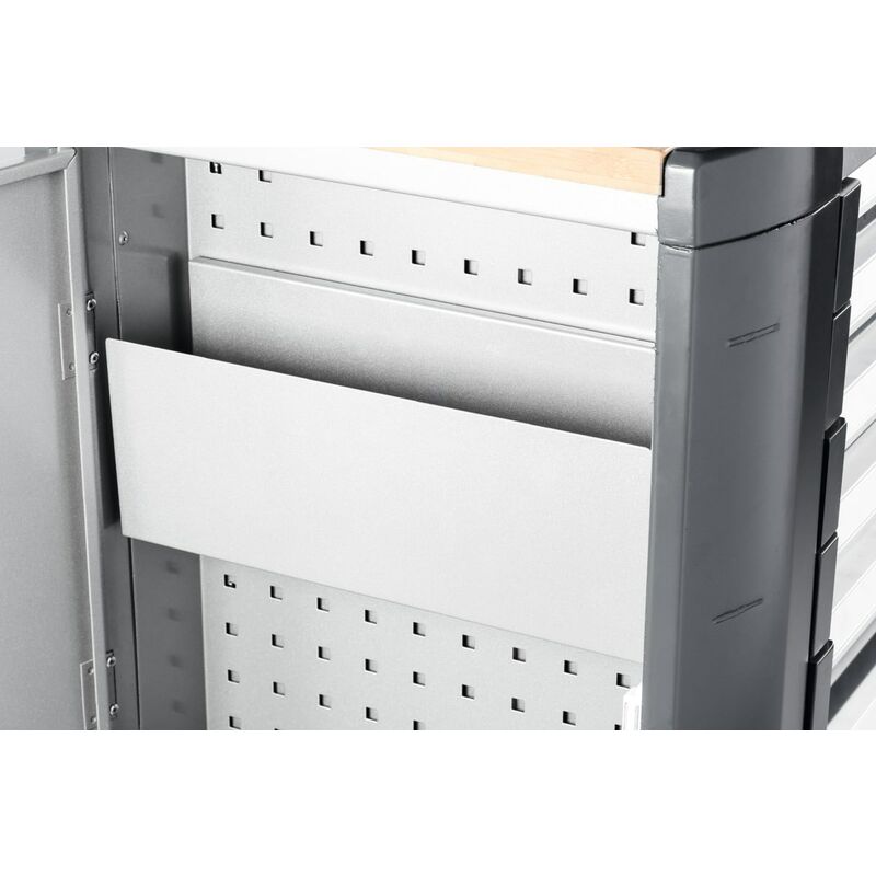 In lamiera di acciaio e termoverniciato in argento. Da applicare al pannello in lamiera forata. Per: Pannello in lamiera forata di acciaio con quadro □ 9×9 mm e passo da 37 mm. Carrelli per officina XL ToolCar n. art. 914590. Dati tecnici Tipo di prodotto Guida cavi Serie ToolCar Larghezza, mm 499 Altezza, mm 160 Profondità, mm 90 Altezza utile, mm 140