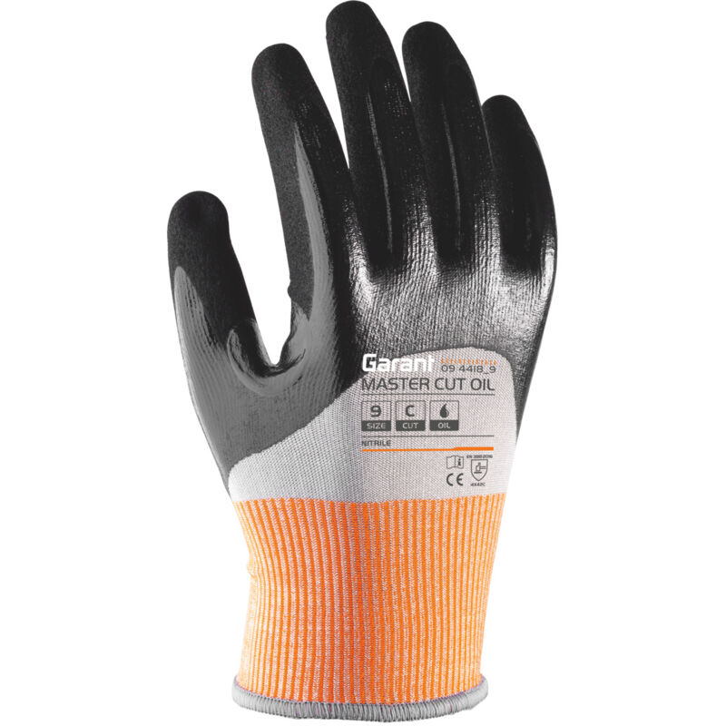 DescrizioneEsecuzione:Aderente ed estremamente comodo grazie alla tecnologia di lavorazione a 18 maglie. Comodo rivestimento in microschiuma di nitrile per un'ottima sensibilità tattile e un'elevata destrezza. Particolarmente adatto per la manipolazione di precisione di componenti affilati di piccole dimensioni. Perfettamente indicato anche negli ambienti umidi od oleosi grazie al rivestimento con 3/4 di nitrile fino alle nocche. Un secondo strato di rivestimento in nitrile sabbiato sul palmo e sulle dita garantisce una presa particolarmente sicura. Con piega del pollice rinforzata per garantire una maggiore durata.GARANT MASTER CUT C OIL. Guanto antitaglio molto flessibile con livello di protezione antitaglio C. Particolarmente adatto per ambienti di lavoro oleosi con pericolo di taglio elevato, ad esempio su macchine per la truciolatura.Norma:EN 388;