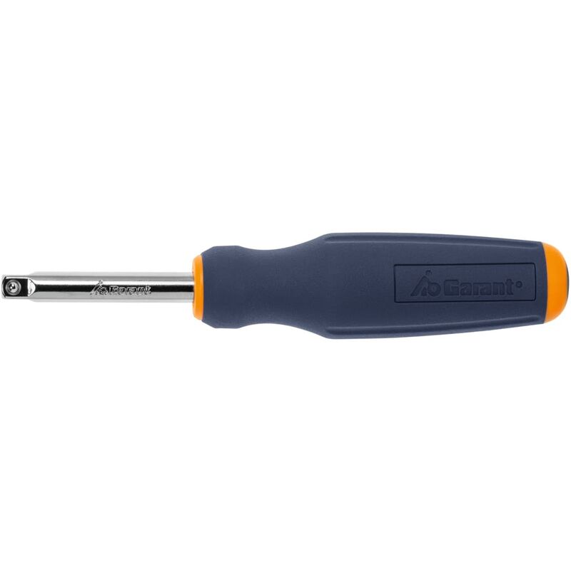 La selezione del materiale e i processi di forgiatura speciale garantiscono un funzionamento ottimale e una lunga durata. Grazie al quadro interno ribassato, a quello esterno smussato e alle quattro nervature di presa, è possibile accoppiare i raccordi e gli accessori di manovra anche “alla cieca”. Norma: Außenvierkante nach DIN 3120-A 6,3 mit federnder Kugel, Innenvierkante nach DIN 3120. DIN 3122-E 6,3 Materiale: Acciaio al cromo-vanadio, esecuzione cromata. Per: Chiavi a bussola manuali. Dati tecnici Quadro di manovra femmina Zoll 1/4 Tipo di prodotto Chiave a bussola Lunghezza complessiva, mm 146