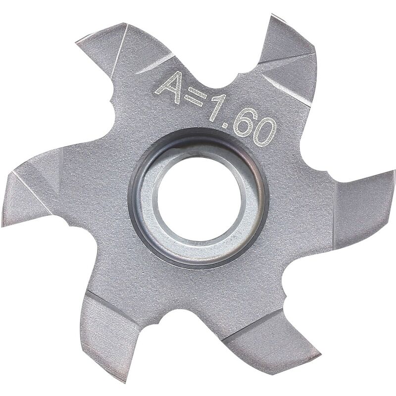 Dati tecnici Acciaio < 65 HRC m/min idonea GG(G) m/min idoneo INOX < 900 N/mm² m/min idoneo Alluminio, plastiche m/min idoneo Acciaio < 1100 N/mm² m/min idoneo INOX > 900 N/mm² m/min idoneo Acciaio < 750 N/mm² m/min idoneo Acciaio < 55 HRC m/min idoneo Acciaio < 60 HRC m/min idoneo Acciaio < 500 N/mm² m/min idoneo Acciaio < 900 N/mm² m/min idoneo Ti > 850 N/mm² m/min idoneo a umido max. idoneo Alluminio (a truciolo corto) m/min idoneo Uni m/min idoneo a secco idoneo Alluminio > 10% Si m/min idoneo Acciaio < 1400 N/mm² m/min idoneo Acciaio < 67 HRC m/min idoneo Numero taglienti Z 6 Tipo HB7720 Modello P16 ⌀ Esterno D mm 16 Tipo di prodotto Inserto per taglio per fresatura circolare Dimensione nominale spessore anello, mm 1,6 Larghezza scanalatura W −0,03, mm 1,68 Profondità t per P16/P26, mm 1,25 Raggio R, mm 0,3