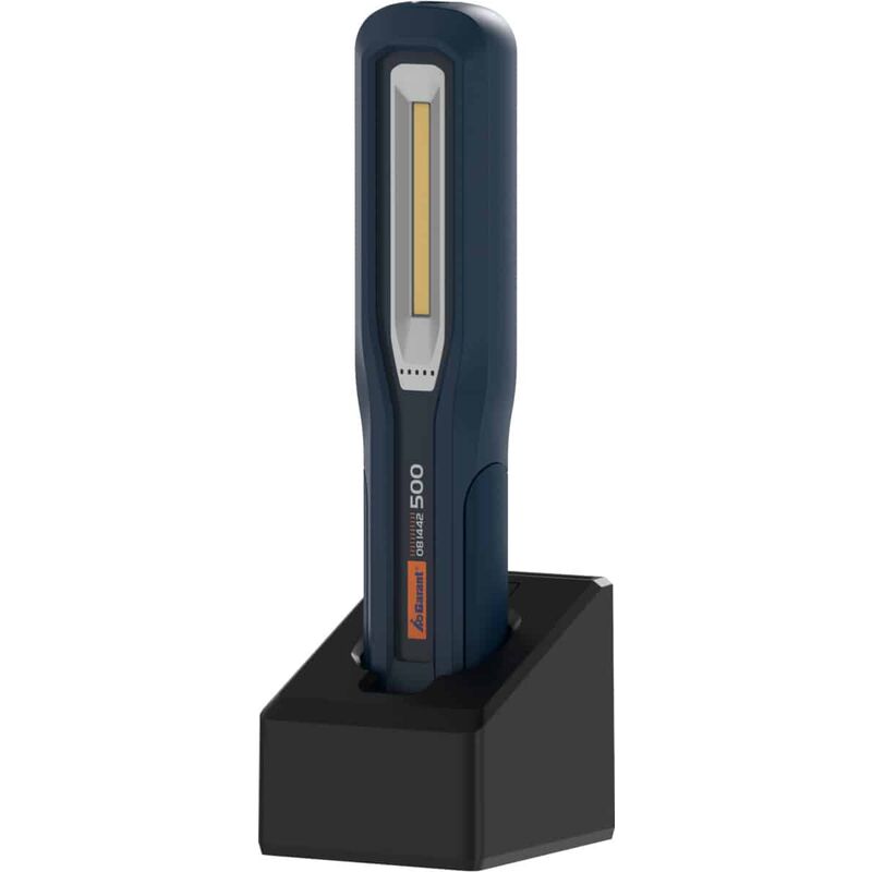 Lampada da lavoro a batteria a LED dalla struttura sottile e robusta per infinite applicazioni. Pratico monitoraggio dello stato della batteria mediante l'indicatore a LED direttamente sulla lampada. * Luce principale regolabile in continuo da 10 a 100%. * Funzione faretto integrata. * Impiego flessibile grazie alla base magnetica orientabile di 180° e al gancio girevole e apribile. Stazione di carica compatibile con il sistema Garant Easyfix. Caricamento semplice e sempre a portata di mano. Funzione: IP65: protezione contro i getti d'acqua da ogni direzione e contro la penetrazione di polvere (antipolvere), nonché protezione completa contro il contatto. Fornitura: Incluso cavo di carica USB-C e alimentatore di corrente. Nota: Per il montaggio su pannelli forati Easyfix, ordinare anche la piastra di supporto n. art. 955820 Dim. 2. Dati tecnici Tipo di prodotto Lampade da lavoro Tensione batteria, V 3,7 Capacità batteria, Ah 3 Larghezza complessiva, mm 47 Corrente di illuminazione, lm