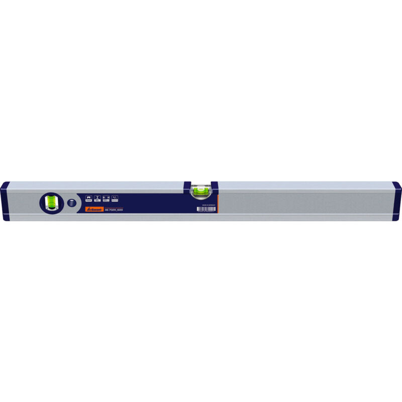 Profilo con rivestimento robusto in alluminio anodizzato con elevata rigidità flessionale. Superficie di contatto piana e prismatica per un allineamento perfetto su superfici, tubi e bordi. Bolla orizzontale senza bordi con effetto lente d'ingrandimento per una lettura senza deformazioni. Con due controlli di verticalità. Norma: Profilo con rivestimento robusto in alluminio anodizzato con elevata rigidità flessionale. Superficie di contatto piana e prismatica per un allineamento perfetto su superfici, tubi e bordi. Bolla orizzontale senza bordi con effetto lente d'ingrandimento per una lettura senza deformazioni. Limite d'errore nella misurazione dei bordi: 0,75 mm/m. Dati tecnici Tipo di prodotto Livella a bolla Lunghezza, mm 2.000 Sezione trasversale, mm 24 × 55 Errore massimo in posizione normale, mm/m 0,5 Errore massimo con misura sopratesta, mm/m 0,75
