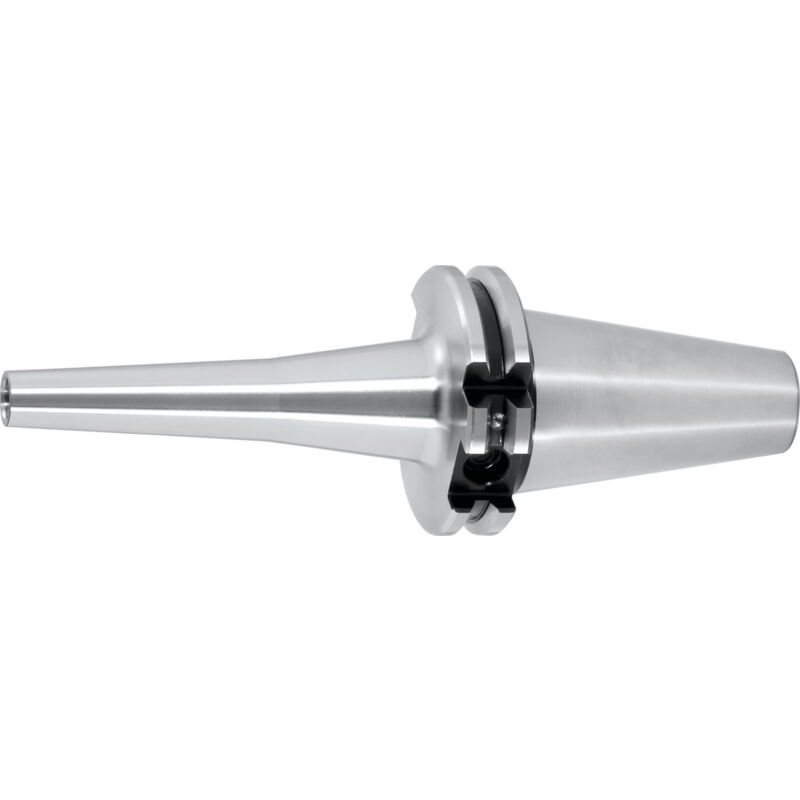 Coni interni ed esterni rettificati. * Codoli con tornitura dura. * Con foro Balluffchip / RFID. * La pinza di serraggio si serra da dietro mediante una vite di serraggio attraverso il mandrino, per cui non è necessaria nessuna ghiera di serraggio! Vantaggi: La struttura estremamente sottile e permette la lavorazione anche di componenti di difficile accesso, come ad esempio nella realizzazione di utensili e stampi. Uso: Per il serraggio di utensili con codolo cilindrico secondo DIN 6499. Fornitura: Inclusa vite di serraggio e chiave con leva a T. Accessori speciali: Codoli (AB) n. art. 308600 − 308806, chiave di serraggio AB n. art. 308820- 308835, perno di serraggio GARANT n. art. 309563, pinze di serraggio ALBRECHT n. art. 309572 - 309573. Dati tecnici Adattatore SK 40 A = 160 Foro Balluffchip sì Forma A Strategia di truciolatura HSC Qualità equilibratura G con numero di giri G 2,5 con 25000 min-1 Precisione della concentricità radiale µm ≤ 5 Norma attacco ISO 7388-1 Tipo di