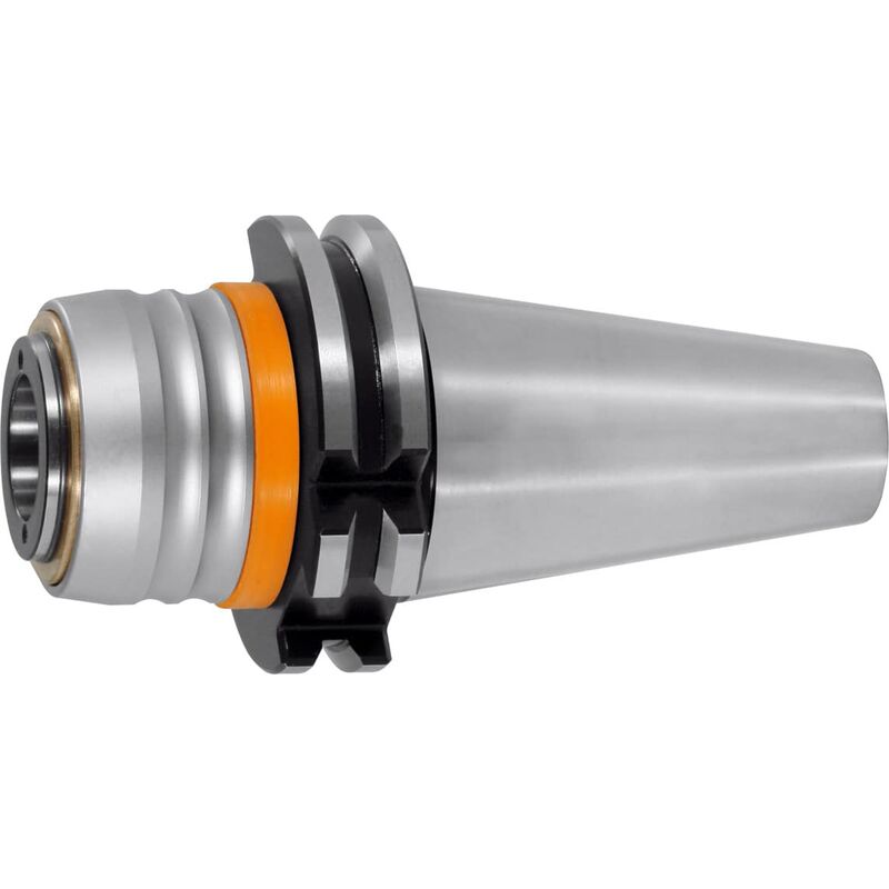 Con compensazione assiale minima (MLA), grazie allo smorzatore. * Aumento della durata del maschio a filettare fino al 300%. * Adduzione interna del lubrorefrigerante fino a 50 bar. * Serraggio sicuro con le bussole a innesto rapido per pinze ER. * Concentricità radiale del cono del codolo rispetto al cono all'attacco < 3 µm. Uso: Per centri di lavorazione con mandrino sincronizzato. * Per riequilibrare differenze di passo tra maschio a filettare e mandrino sincronizzato. * Per compensare eventuali tolleranze di passo del maschio a filettare. Accessori speciali: Pinze ER, vedi n. art. 308881-309240 (Dim. ER11 / 16 / 25). Pinze di serraggio ER per maschi a filettare con attacco quadro, vedi n. art. 309399 - 309413 (Dim. ER 11 /16 / 25). Bussole a innesto rapido e prolunghe, vedi n. art. 338120 - 338142. Codoli, vedi n. art. 308600 − 308806. Raccordo lubrorefrigerante per HSK, vedi n. art. 309880. Bussola per HSK, vedi n. art. 309890. Nota: Numero di giri max. 4.000 min-1. Dati