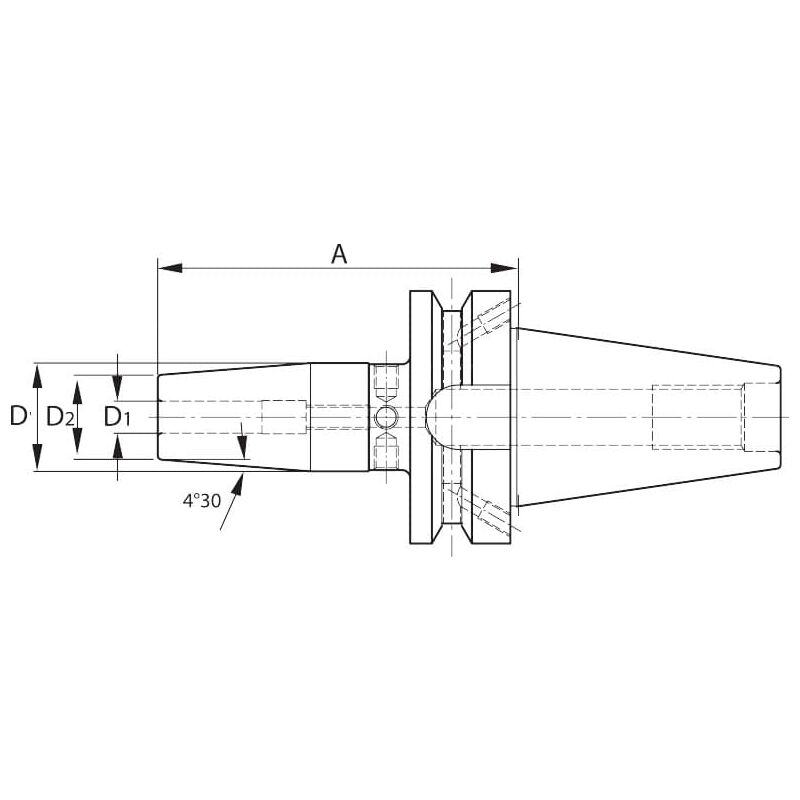 HPC Sporgenza totale Dim. A 80 mm ⌀ esterno D 34 mm ⌀ D2 27 mm Tipo di prodotto Mandrino portautensili a calettare Codice articolo 303407 16 EAN / GTIN 4062406285951