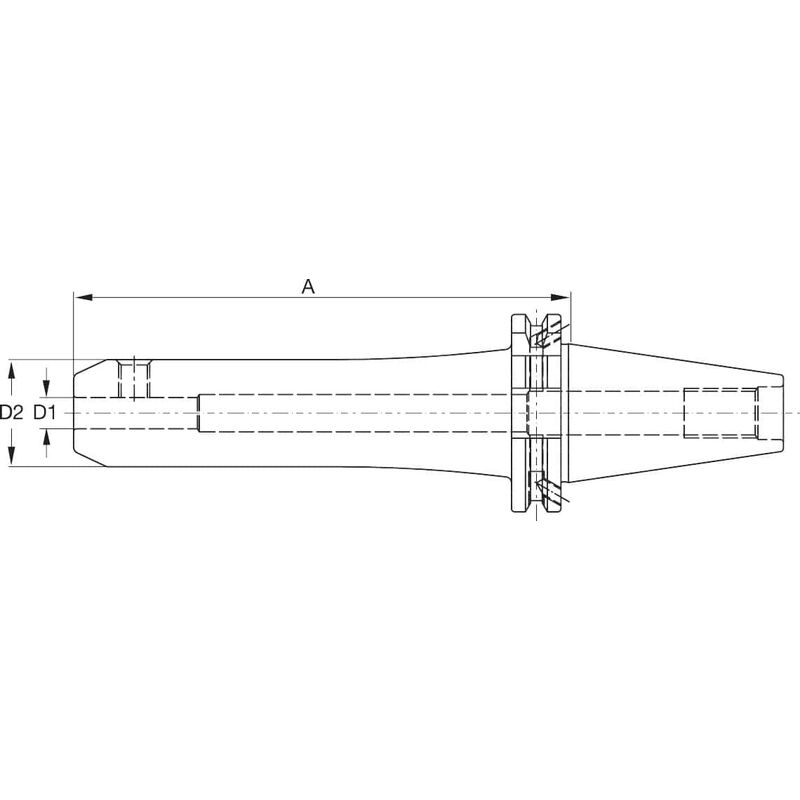 Con foro per chip Balluff/RFID. GARANT − Tutti i codoli con tornitura dura (silenziosità!). Qualità di equilibratura G 2,5 / 25000 min-1. Uso: Per il serraggio di utensili con piano di trascinamento laterale a norme DIN 1835 B e DIN 6535 HB. Accessori speciali: Codoli (AB) n. art. 308600 − 308806, chiavi di serraggio AB n. art. 308820 − 308835. Dati tecnici Precisione della concentricità radiale µm ≤ 3 Strategia di truciolatura HPC Norma DIN 6359 Qualità equilibratura G con numero di giri G 2,5 con 25000 min-1 Adattatore SK 50 A = 130 Forma ADB Norma attacco ISO 7388-1 Tipo di prodotto Mandrino ⌀ Attacco D1, mm 8 Sporgenza totale Dim. A, mm 130 Vite di serraggio di ricambio n. art. 309900 8 ⌀ Esterno D, mm 28