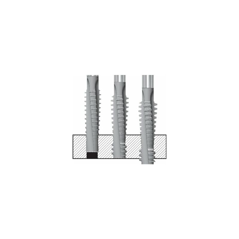 DescrizioneEsecuzione:Set composto da 3 pezzi, 1 sgrossatore, 1 semifinitore e 1 finitore.Sgrossatore con imbocco lungoFinitore con tolleranza H7Nota:Solo per maschiatura a mano.Dati tecnici Misura del filetto 14 Rivestimento non rivestito Tipo di filettatura TR Angolo di filetto 30 ° Materiale da taglio HSS E Norma Norma interna Classe di tolleranza DIN 103 7H Codolo Codolo cilindrico con h9 Passaggio interno per LR no Utilizzo per tipo di foro fino a 1,5×D in caso di foro di passaggio Direzione di taglio destro Passo della filettatura 3 mm Lunghezza complessiva L 130 mm ⌀ codolo Ds 10 mm Quadro del codolo □ 8 mm ⌀ preforo 11,25 mm Tipo di utensile di filettatura Maschio a mano Numero di scanalature per i trucioli 3 Numero taglienti Z 3 Tipo di prodotto Maschi a filettare Codice articolo 130770 TR14X3 EAN / GTIN 4062406087616