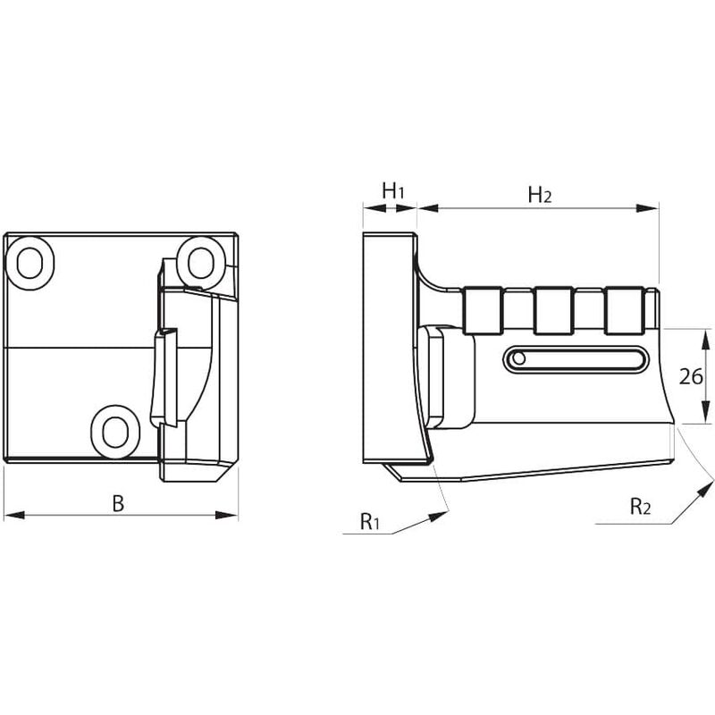 DescrizioneEsecuzione:Struttura sottile in 4 esecuzioni e montabile con un'angolazione di 180°, per l'impiego normale e per l'impiego sopratesta. Ottima combinazione di utensili per eseguire le operazioni di troncatura tra o vicino all'asta principale e al contromandrino, con minima sporgenza dei componenti.Uso:Per l'impiego su revolver esagonali e nei mandrini portafresa dei centri di tornitura / fresatura.Per lame di troncatura eco n. art. 273864 − 273866, n. art. 273562 e 273564.Nota:Passaggio laterale del refrigerante per lame di troncatura eco.Esecuzioni RR e LR per l'uso della lama di troncatura 273864. Esecuzione RL e LL per lama di troncatura 273865. Esecuzioni RR e LL per lama di troncatura 273866. Staffe di fissaggioadatte n. art. 279841 2 e viti adatte n. art. 279815 14. Vedi elenco ricambi.Le lame 273562 e 273564 possono essere utilizzate solo sui portautensili RR e LL.Dati tecnici Larghezza B 83 mm Altezza H1 14,5 mm Altezza H2 65 mm Raggio R1 117 mm Raggio R2 50 mm