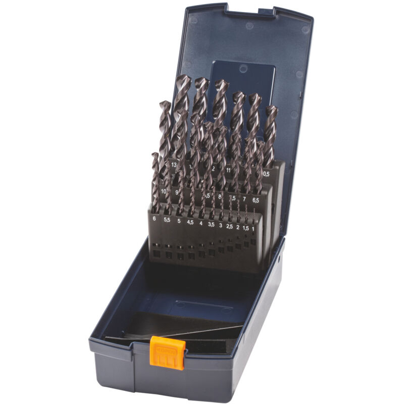 DescrizioneEsecuzione:Composto da punte elicoidali a norma DIN 338.Punta elicoidale HPC a elevate prestazioni per materiali altamente resistenti e altamente legati. Particolarmente robusta grazie al nocciolo rinforzato e a un profilo di scanalatura parabolico. Punta con correzione dell'angolo di spoglia. Concentricità precisa per forare in modo impeccabile.Con punta forma S.Dati tecnici Area di foratura 1 mm - 13 mm Rivestimento TiAlN Materiale da taglio HSS E PM Norma DIN 338 Tolleranza ⌀ nominale h8 Angolo di affilatura 130 ° Angolo dell'elica 38 ° Codolo Codolo cilindrico Numero taglienti Z 2 Passaggio interno per LR no Strategia di truciolatura HPC Numero di punte 25 Punte a misure crescenti di 0,5 mm in cassetta si Colore collarino verde Tipo di prodotto Punta elicoidale Codice articolo 115465 1-13 EAN / GTIN 4045197890276
