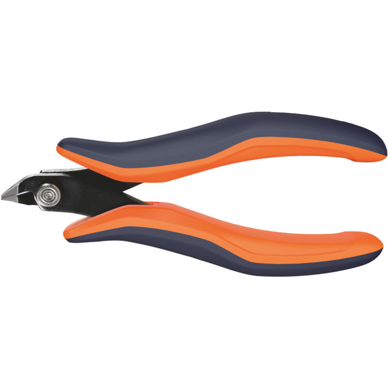 Pinza professionale con taglienti per taglio agevolato. Entrambe le parti della pinza sono assemblate in modo accurato grazie ai fori precisi e alle superfici rettificate per garantire un taglio preciso. Con molla di richiamo e impugnatura ergonomica per un utilizzo sicuro e agevole. Manici rivestiti in bimateriale conduttivo. Indicati per ESD. Materiale: In acciaio al carbonio (C70), lavorato a stampo e termotrattato con fosfatazione antiriflesso. Dati tecnici Sfaccettatura testimone molto fine Tipo di prodotto Pinza tagliente Attributo del nome del prodotto SFW Proprietà elettrostatiche EGB/ESD Superficie con fosfatazione antiriflesso Materiale Acciaio al carbonio (C70) Lunghezza della testina, mm 18 Capacità di taglio filo di rame fino a ⌀, mm 1,3 Larghezza della testa, mm 14