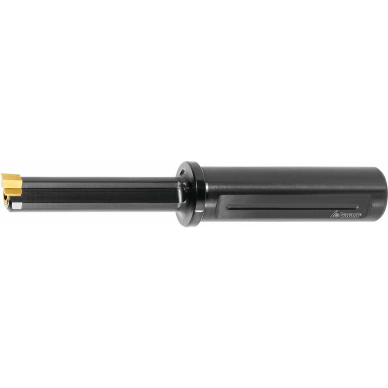 DescrizioneAttenzione:Usare sempre il ⌀ di preforatura minimo corrispondente alla larghezza della scanalatura (ad es. per larghezza scanalatura 25 mm = ⌀ di preforatura minimo 48 mm).Nota:Le singole dimensioni del supporto variano in base alla larghezza utile. Se possibile, in questi casi utilizzare sempre la combinazione ottimale di supporto e inserto per taglio (stessa dimensione) per la massima stabilità.In caso di torni senza asse Y, utilizzare la bussola a eccentrico n. art. 290391− 290393 per l'impostazione esatta delle coordinate Y.Per il controllo dell'orientamento del mandrino nei centri di lavorazione usare l'ausilio di allineamento n. art. 290397 e un comparatore.Dati tecnici ⌀ gambo 25 mm Passaggio interno per LR sì per larghezza scanalatura m 2 mm Lunghezza utile L1 34,5 mm ⌀ Cartuccia D1 6,5 mm Spostamento centrale L3 3,5 mm ⌀ di preforatura minimo Dmin 7,3 mm Vite 290399 1 Lunghezza codolo Ls 90 mm Codolo Codolo Weldon Tipo di prodotto Utensili stozzatori di cave e