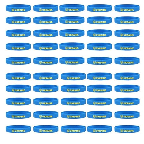 Garbarbar Bracciale ucraino, STO con Braccialetti di Gomma Ucraina, Braccialetto in Silicone Bandiera Ucraina, Bracciale Pray for Ukraine, Braccialetti Bandiera Ucraina Fatti a Mano (B,50PCS)