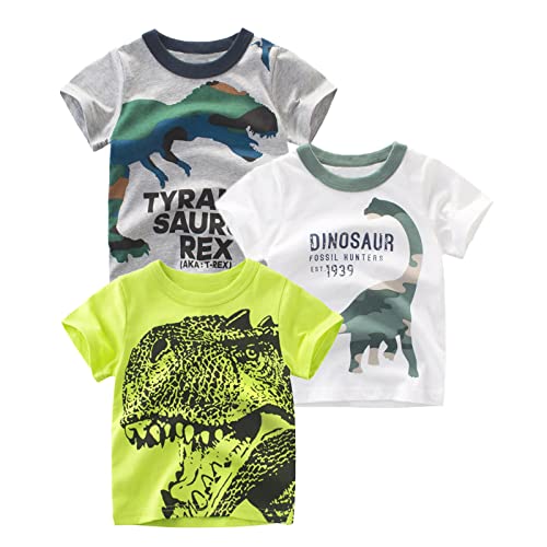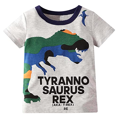 Garcon - Maglietta a maniche lunghe dinosauri per bambini, 100% cotone Tops Tee da 1 a 8 anni, Grigio Bianco Verde, 3-4 Anni