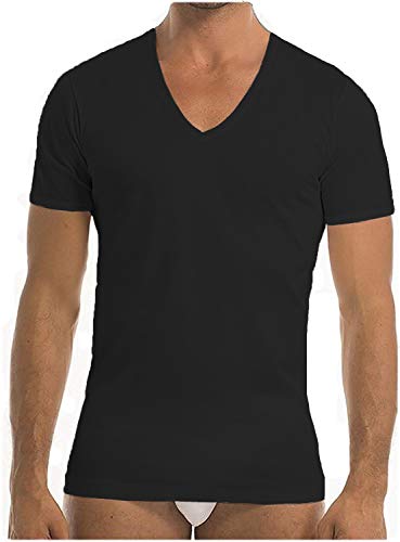 GARDA 3 t-Shirt Filo di Scozia Scollo a Punta 0036 100% Cotone (4, Nero)