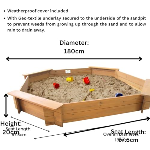 Perfetto per qualsiasi giardino domestico, la sabbiera ottagonale viene fornita completa di sottofondo in tessuto geo- e una copertura in PE per mantenere la sabbia pulita.