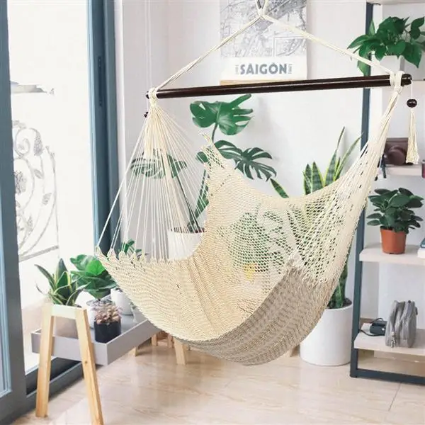 Home Garden Large Hammock Chair Swing Seat Hanging Chair with Tassels Lazy Rope Chair Coffee Color