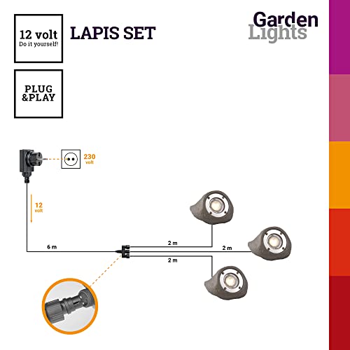 Garden Lights GL3577443 - Lampada a faretti Lapis, 12 V-3 Pezzi, Colore: Grigio, 14,5 x 14,5 x 11 cm