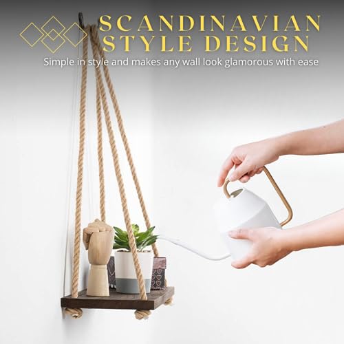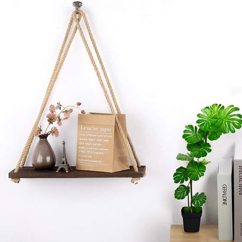 Mensola sospesa in corda di legno rustica: questa mensola sospesa è realizzata in legno rustico e pende da una corda per un look scandinavo. Perfetto per qualsiasi arredamento moderno della casa.
