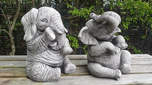 Garden Ornaments by Onefold Statua a forma di elefante grande, con la proboscide verso l'alto, realizzata a mano in pietra, ottima come decorazione da giardino