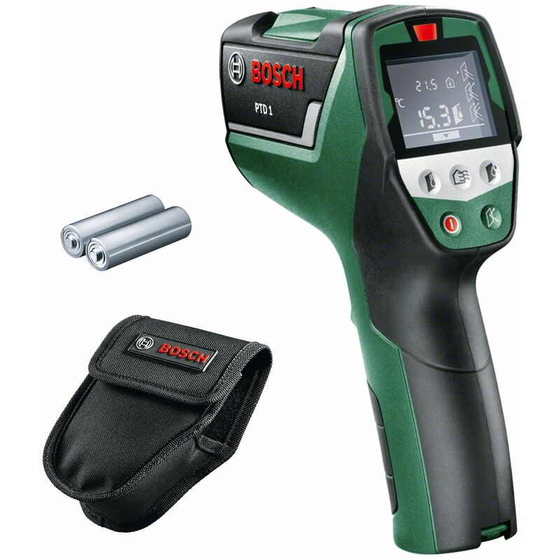 Risparmiare energia ed avere un'abitazione più salubre: con il rilevatore termico PTD 1 di Bosch è possibile individuare con estrema semplicità eventuali ponti termici nascosti e punti a rischio di formazione muffa. Questo strumento di misurazione rileva la temperatura di un ambiente o di una superficie, l'umidità dell'aria ed interpreta i risultati delle misurazioni effettuate. Il PTD 1 è semplice da utilizzare, dispone di tre diverse modalità di misurazione che possono essere rapidamente selezionate tramite la semplice pressione di un pulsante: temperatura, ponte termico e allarme muffa. Scelta la modalità, è necessario impostare il tipo di superficie da controllare (grado di emissione) scegliendo tra uno dei tre gruppi predefiniti visualizzati sul display, fatto questo, si può iniziare il rilevamento. Il PTD 1 proietta sulla superficie un cerchio di punti laser che identificano l'area di misurazione e tutti i risultati vengono visualizzati sul display illuminato ed evidenziati con