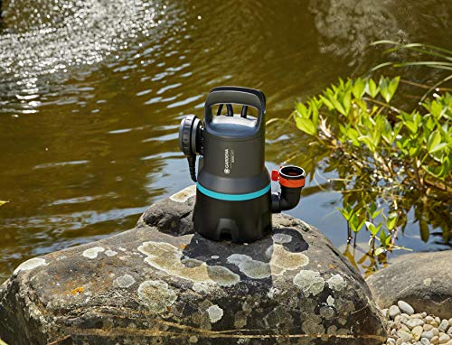 GARDENA Pompa sommersa acqua sporca 9000: pompa sommersa portata 9000 l/h, funz. Automatic, interruttore flottante funz. continuo, particelle sporco max. 25 mm, sistema attacco rapido, 300 W (9040-20)
