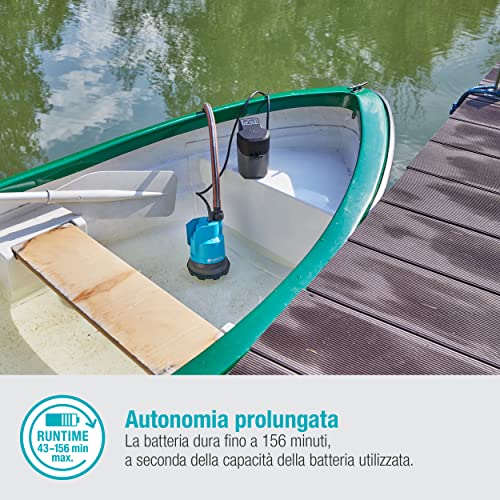 Multiuso: tre livelli di potenza differenti consentono di adattare la pompa in base alle necessità. Con una carica della batteria, può trasportare fino a 2000 litri d'acqua. A seconda della modalità, la durata max. varia dai 18 ai 65 min