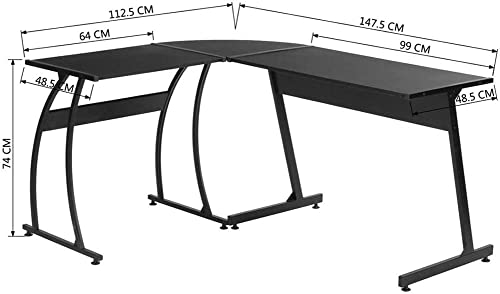 Gardenia Corner Nero Scrivania Angolare, Acciaio, 112,5 x 147,5 x 74