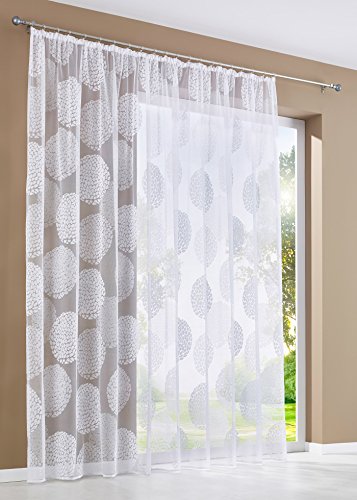 Gardinenbox Tenda in jacquard Fabio 245 x 300 cm (altezza x larghezza), con nastro arricciato, universale, bianco, motivo a cerchi, trasparente, voile, soggiorno, 13143