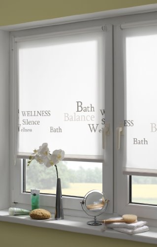 Gardinia 30930 Easyfix - Tenda avvolgibile con Scritte a Tema Bagno, 60 x 150 cm, Montaggio Tramite Ganci e Zone adesive