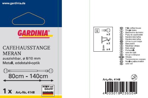 Gardinia Meran Asta con 2 Supporti per Il Fissaggio, Metallo, Effetto Acciaio Inox, 80-140 cm