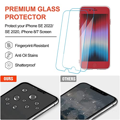 Garegce Cover Compatibile con iPhone SE 2022 5G (SE 3) / SE 2020, Cover per iPhone 8/7 con 2 Pezzi Pellicola Vetro Temperato, Custodia Sottile Silicone in TPU Morbido Antiurto Case, Trasparente