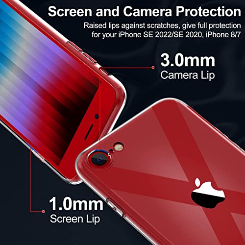 Design Elegante e Trasparente, Custodia transparente iPhone SE 2022 / 2020 / 8 / 7 la parte posteriore completamente trasparente ti consente di mostrare la bellezza naturale del tuo telefono, rende anche il telefono più elegante e bellissimo