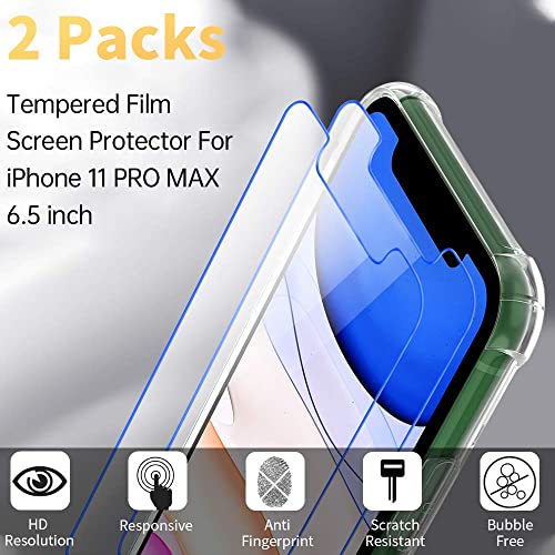 Garegce Cover Compatibile con iPhone 11 Pro Max con 2 Pezzi Vetro Temperato, Custodia iPhone 11 Pro Max Trasparente Silicone Sottile Antiurto AntiGraffio Protettiva Cover - 6.5 Pollici, Trasparente
